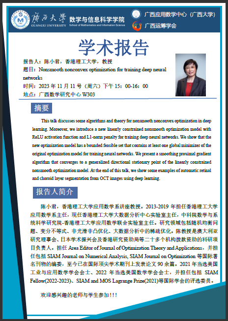 学术报告:Nonsmooth nonconvex optimization for training deep neural networks