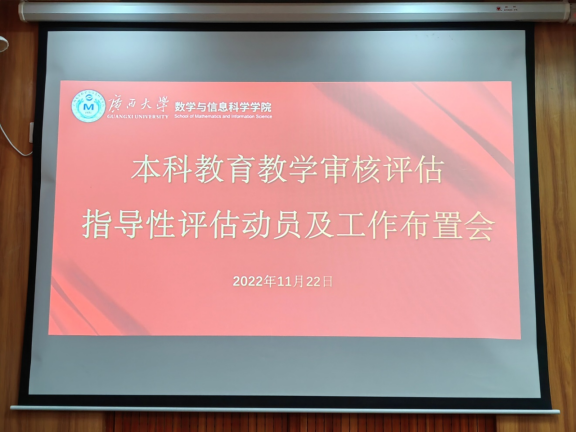 本科教育教学审核评估指导性评估,明年4月将迎来本科教育教学审核评估。为切实做好迎评工作, 2022年11月22日下午数信学院组织召开了迎接本科教育教学审核评估和指导性评估工作动员及布置会,会议由院党委书记黄建荣主持,全体教职工参加会议。