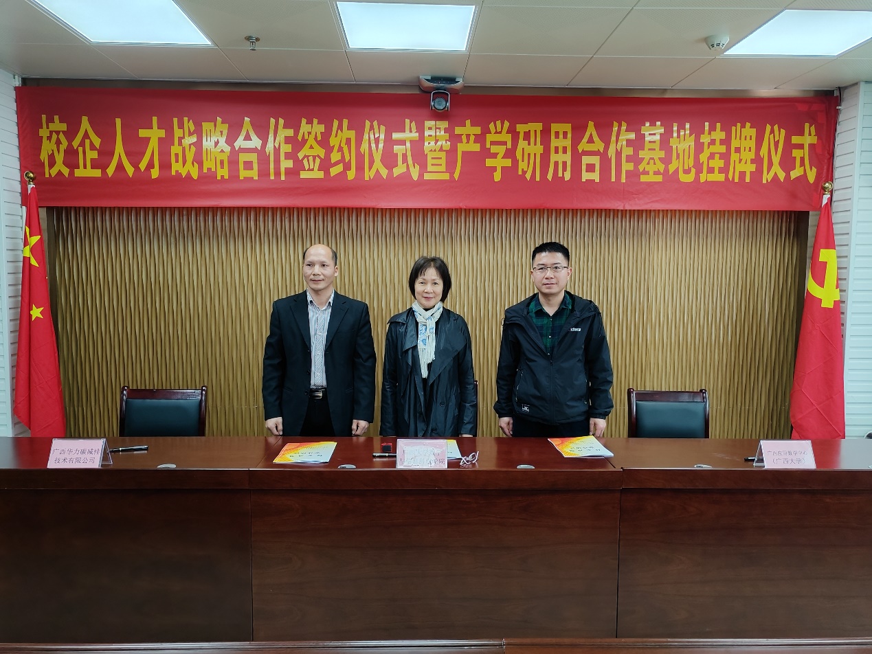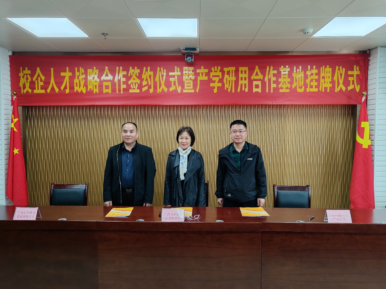 )分别与广西正华潜力实业有限公司、广西华力碳减排技术有限公司举行校企人才战略合作签约仪式暨产学研用合作基地揭牌仪式。院党委副书记郭海燕,副院长、广西应用数学中心(含羞草