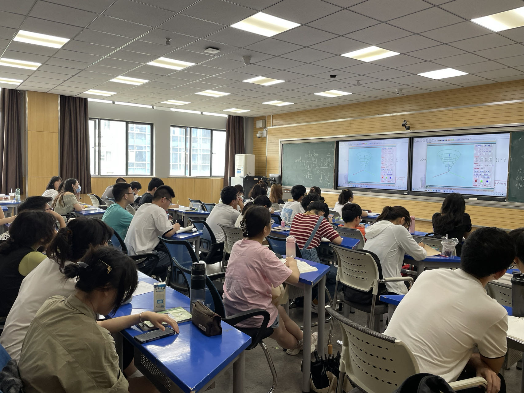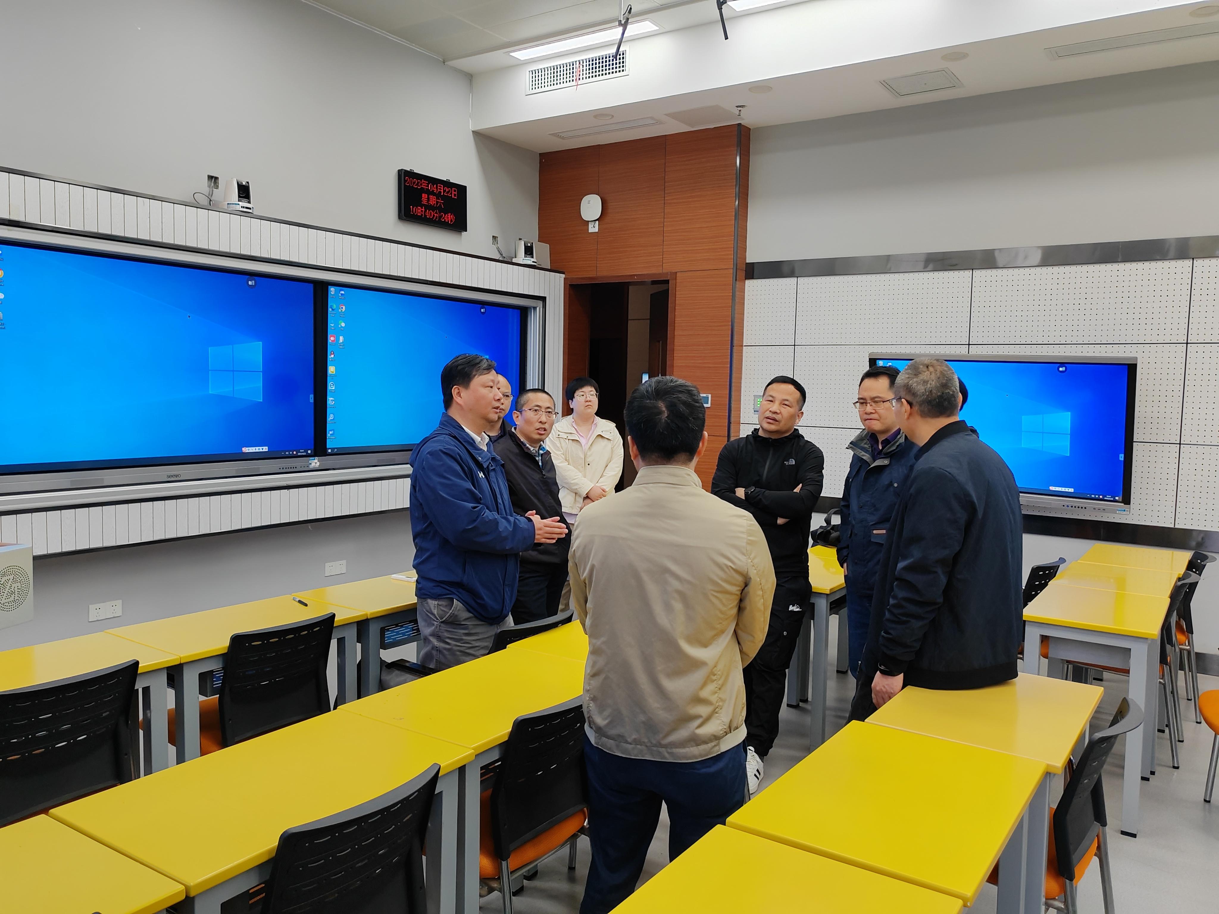 访问期间,调研组一行还集体观摩了华中师范大学智慧教室的授课现场,听取了智慧教室系统教学示范,亲身体验实操与教学组织全过程,并就智慧教室的软硬件系统及多媒体课件使用情况进行了深入的探讨和交流。双方一致同意成立跨校级的智慧教学虚拟教研室,共享教学资源。