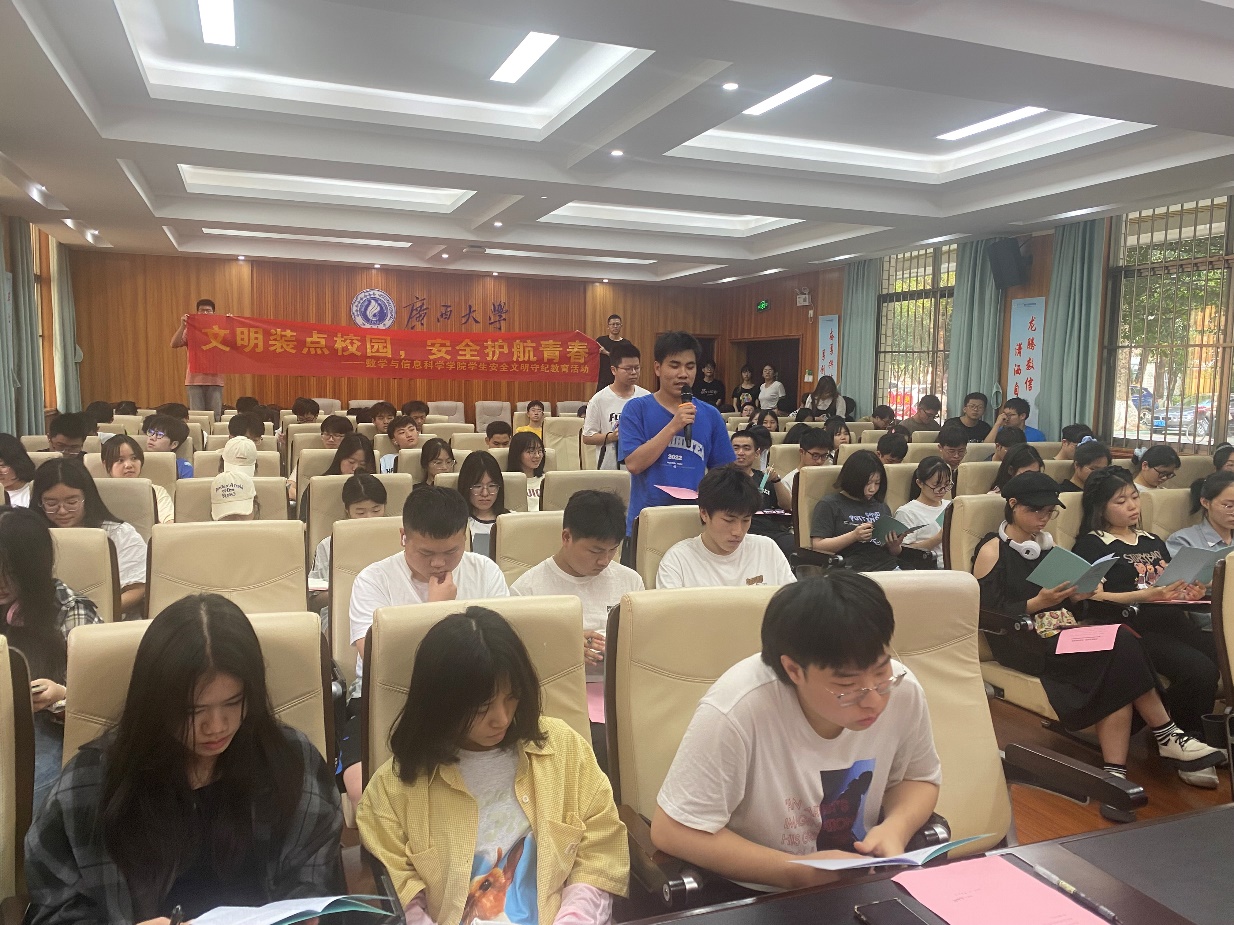 唐旭彬表示,共同维护高校整体安全不仅是一项工作任务,更是一项政治责任,抓好学生安全文明守纪工作是维护学校正常秩序、提高教学质量的基础。全体师生必须充分认识安全文明守纪的重要意义,牢固树立以学生为中心、生命至上的安全理念,树立安全风险防范意识,增强责任感、使命感、紧迫感,助力科学文明习惯的养成,让安全文明守纪成为自觉行动,以新姿态迎接挑战,做奋发向上、高素质的好青年。