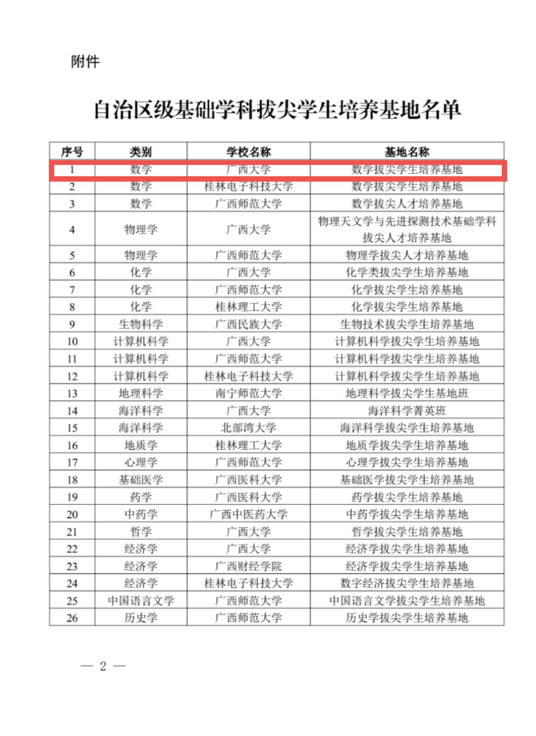 近日,自治区教育厅公布了自治区级基础学科拔尖学生培养基地名单,含羞草 数学拔尖学生培养基地入选。全区共遴选确定26个自治区级基础学科拔尖学生培养基地,其中我校共7个基地入选自治区级基础学科拔尖学生培养基地。
