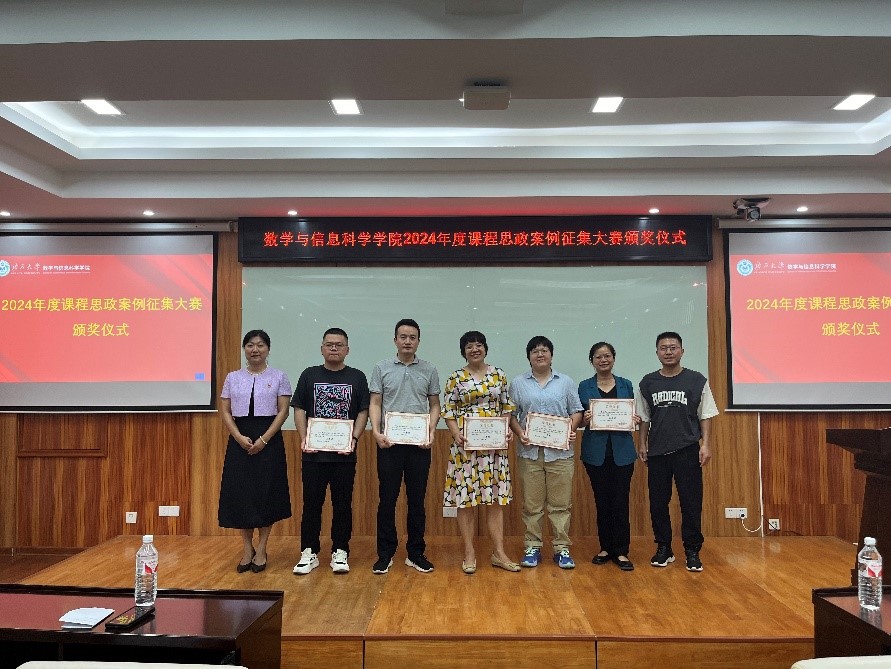 7月11日下午,数信学院2024年度课程思政案例征集大赛颁奖仪式在学院109教室圆满举行。本次活动由学院党委副书记唐旭彬主持,学院领导班子成员为获奖者颁奖。