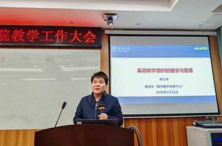 我校教师教学发展中心副主任胡立坤在会上作了“基层教学组织的建设与管理”专题报告。他从基层教学组织相关文件和要求入手,深入剖析了新时代基层教学组织建设的内涵,介绍了高校基层教学组织建设情况,并分析了我校基层教学组织建设与管理过程中存在的问题,明确指出了下一步的工作计划。他特别强调,教育教学改革正朝着数字化、智能化方向发展,希望老师们抓住新机遇,直面新挑战,持续创新教学研究、组织和管理方式,以此提升人才培养能力,提高教育教学质量。他还就如何提升课程思政实效性与教师们作了深入交流。