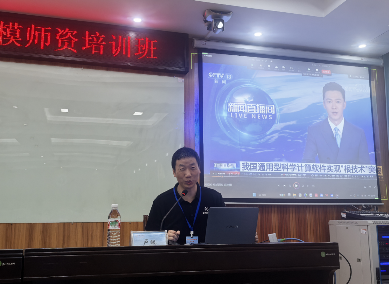 数学建模教学团队担纲,吕跃进教授、张军舰教授、唐春明教授和陈良副教授担任主讲;专题报告则邀请吴孟达、高晓沨、凌巍炜三位知名教授进行授课。培训内容丰富全面,涵盖大学生数学建模竞赛发展历程、教学与竞赛活动规划、教学方法研究、软件应用实践、竞赛试题解析、论文撰写规范等多个领域。会议期间,作为CUMCM赞助单位之一的北京大学重庆大数据研究院/北太振寰(重庆)科技有限公司董事长、北京大学博士生导师卢眺副教授,为与会代表带来题为 “脚踏实地,逆数而行 —— 北太天元数值计算通用软件介绍” 的专题报告。众多专家带来的专业培训与精彩报告,为参会教师提供了极具价值的实践指导。