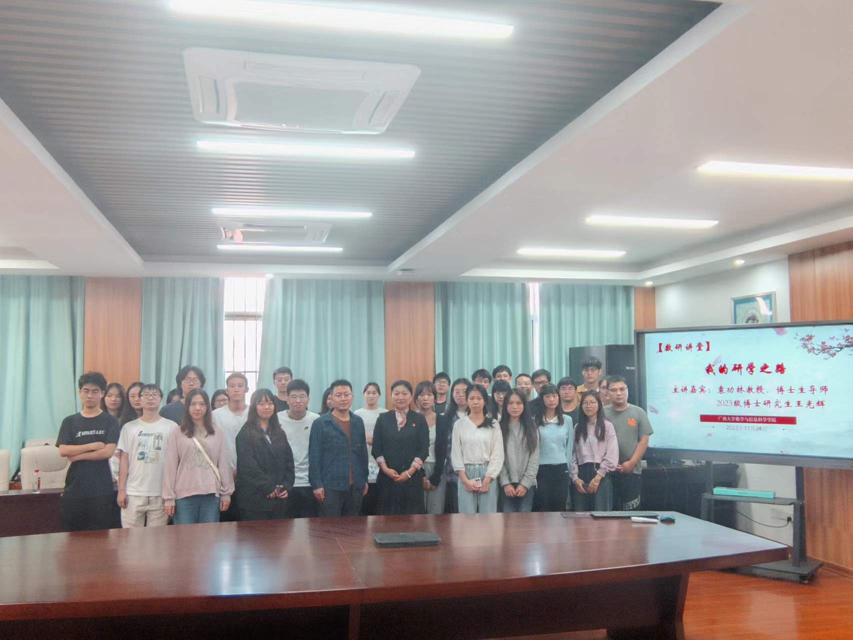 “数研讲堂”是由数信学院党委领导、学院团委具体指导、院研究生会负责实施的研究生学术沙龙活动,是含羞草 研究生会获批的广西研究生教育创新计划项目(君武“研”学堂——中国—东盟新一代信息与大数据技术产业倍增发展论坛)的组成部分之一。活动包含但不仅限于举办学术活动,还可进行学科知识的互助学习,学科竞赛、考博经验分享、思政理论学习、文明礼仪养成等,旨在通过名师讲学、学长领学、学生探讨交流,营造含羞草 研究生的浓郁学术氛围和文化氛围,碰撞思想,发散思维,互学互鉴,共同成长,展现数信学院研究生的科学素养新风貌,提升研究生学术素养,加强研究生基层组织建设,全面激发研究生刻苦钻研、勇担重任的内生动力,以高质量研究生管理体系和科研水平推动含羞草 高质量人才培养。