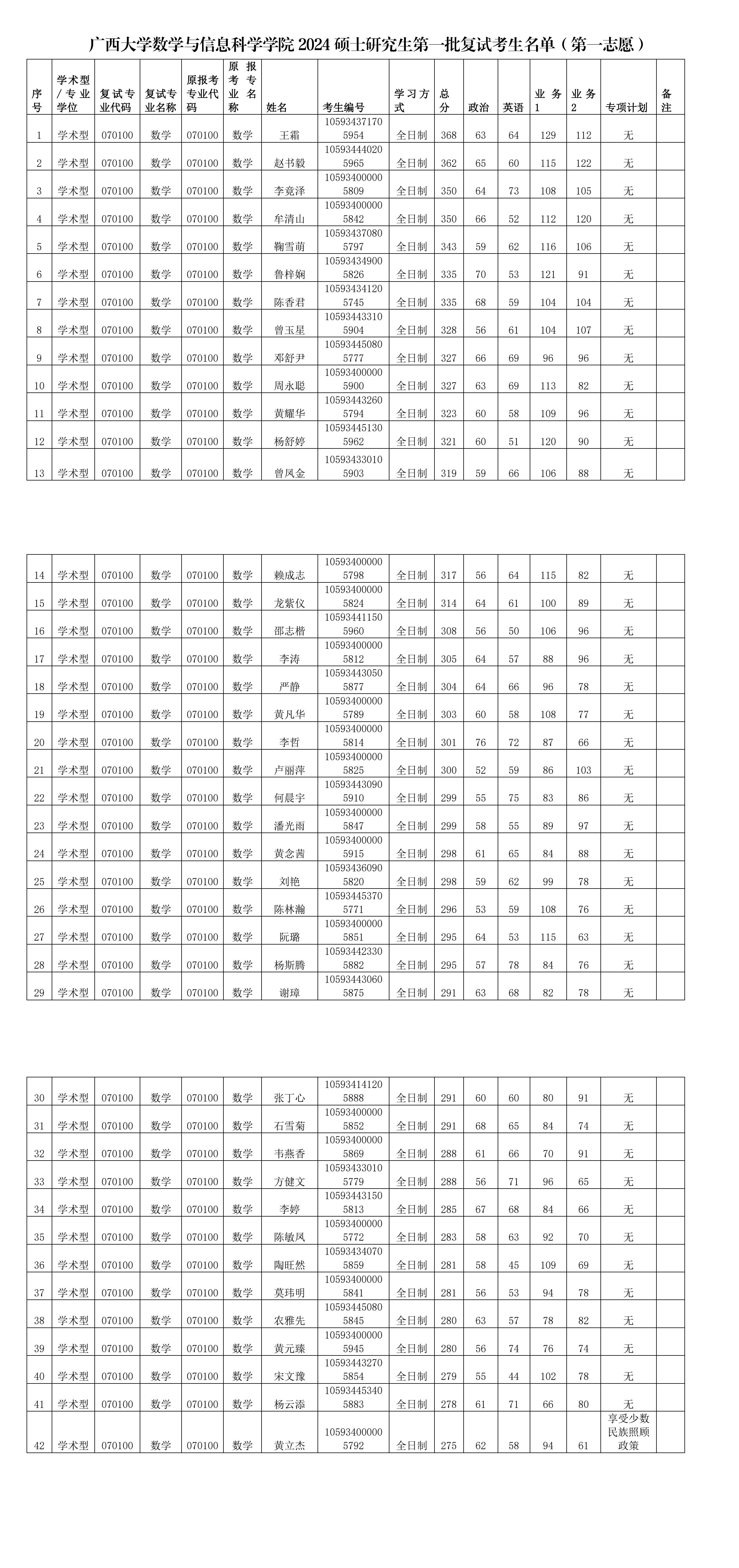 含羞草 2024硕士研究生第一批复试考生名单(第一志愿)