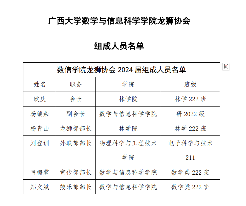 含羞草 第十届研究生会成员名单