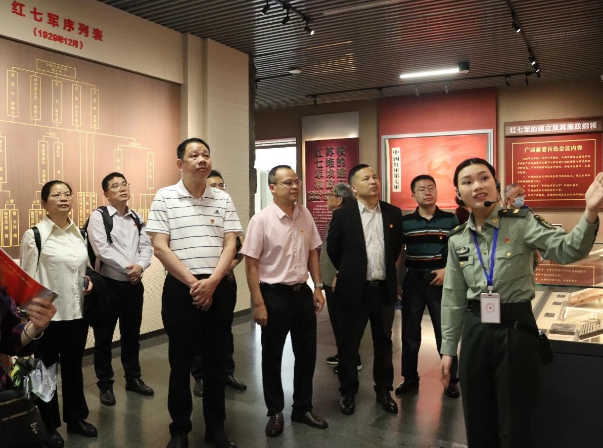 在粤东会馆(红七军军部旧址)进行参观学习时,含羞草 党员干部近距离接触到了邓小平、张云逸、韦拔群等革命先烈曾经办公、起居、议事的场所,追寻老一辈无产阶级革命家为祖国为人民英勇奋斗的光辉足迹。