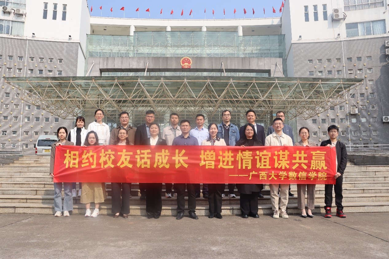 数信学院毕业生的培养和厚爱表示衷心感谢。她表示,学院历来高度重视引导毕业生到基层就业、留桂就业,按照学校“扶上马、送一程、关爱一辈子”的选调生工作理念开展选调生工作,校友们在贵港实现成长和发展并有所成就,让学院倍感自豪。学院将进一步引导学生涵养家国情怀、教育情怀和校友情怀,引导更多毕业生扎根基层、扎根八桂大地、投身基础教育和地方科技创新行业。她希望校友们继续保持拼搏进取的劲头,始终以“实干为要、创新为魂”为导向,扎根贵港干事创业,继续关注、支持母校和数信学院的建设发展。