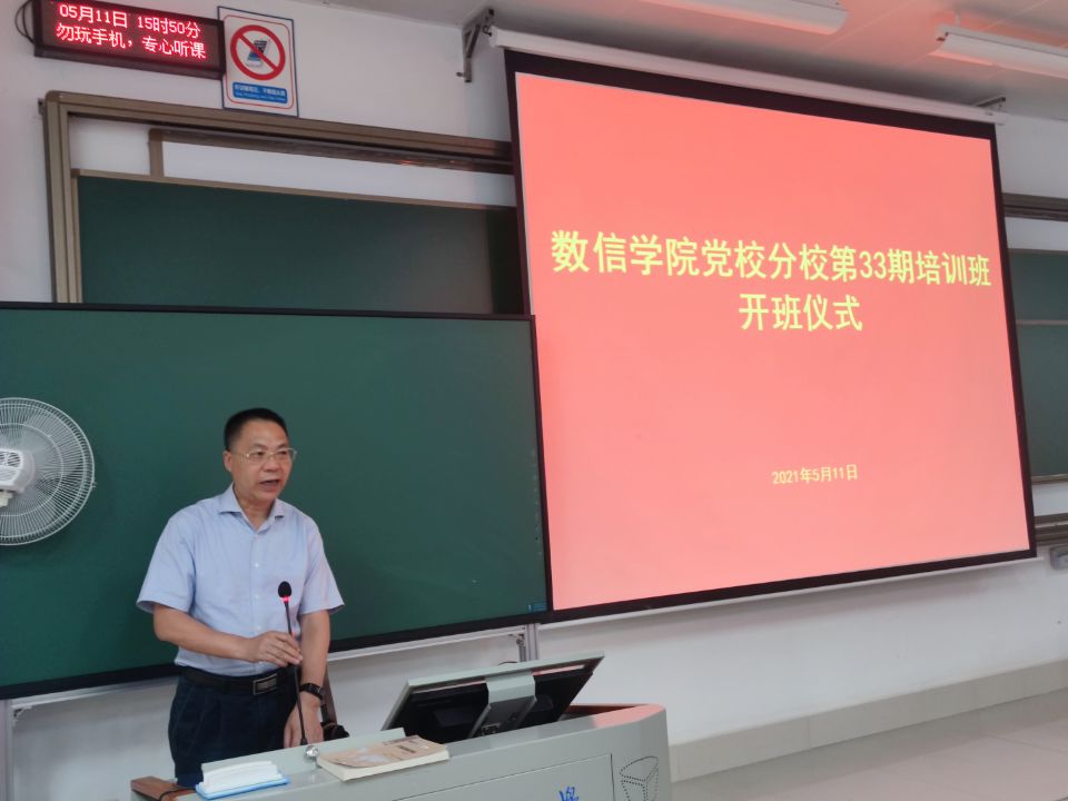 2021511日下午,数信学院党校分校第33期培训班在六教301教室举行。院党委书记、分党校校长黄建荣出席开班仪式并致辞,仪式由院党委副书记、分党校副校长郭海燕主持。